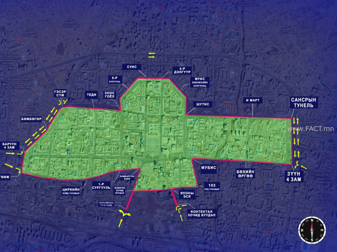 - Чингисийн өргөн чөлөөний Монголын хүүхдийн ордны уулзвараас Монгол шуудангийн уулзвар болон дотогш замуудын хөдөлгөөнийг 9 дүгээр сарын 13-ны Бямба гарагт 07:00-18:00 цагийн хооронд түр хугацаагаар хязгаарлана.
