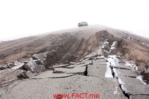 Түүний хэлж буйгаар хаврын гэнэтийн дулаарлаар замын хөрс гэсч эвдрэл гарсан. Уул уурхайн улирал эхэлж хүнд даацын автомашины хөдөлгөөн нэмэгдснээс ч үүдэлтэй гэв. Эвдрэл 224 км үргэлжлэх замд биш, нэгээхэн хэсэгт үргэлжилсэн нь барилга, засварын ажил тэр хэсэгт хангалтгүй, дутуу хийгдсэн болов уу гэмээр харагдаж байлаа. Үүнийг яамны мэргэжилтнээс тодруулахад “Замын гэмтсэн хэсгийн доод хөрснөөс шинжилгээнд явуулсан. Эвдрэл юунаас болсныг тодруулна” гэлээ. Одоогоор хариуцсан байгууллагуудад эвдэрсэн асфальтуудыг зайлуулж, чийгтэй сууриудыг чөлөөлөх үүрэг өгчээ. Засварын ажлыг эхлүүлье гэвч барилгын ажилд тохирсон улирал эхлээгүй, газрын хөрс бүрэн гэсээгүй байна гэж тайлбарлалаа. Түүнчлэн энэ зам 13 жилийн их засварт орох хугацаа нь болсон юм байна.