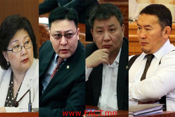 Энэ есөөс Х.Баттулга, Р.Бурмаа, Ж.Батзандан, М.Зоригт нар АН-ынхан. Хэдийгээр тэд энэ намын нэр нүүрээр ард түмний төлөөлөл болон УИХ-д орж ирсэн ч “хүний хүн хүрэн бөөртэй” гэдгийг намынхандаа эргээд нэг сануулчих шиг боллоо.