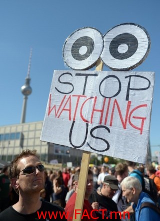 Засгийн газар болон тагнуулын агентлагууд нууцаар мэдээлэл цуглуулж буй ажиллагааг эсэргүүцсэн олныг хамарсан жагсаал өнгөрөгч бямба гарагт Берлинд болсон юм. Хувийн мэдээллийн хамгаалалтыг чангатгахыг хүмүүс уриалж байна.