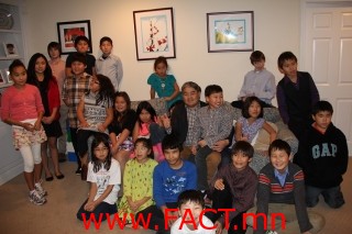 Уулзалтын үеэр хүүхдүүдэд эх орных нь түүх, ёс заншил, соёлын талаар мэдлэг өгөх үүднээс Монгол хэлний “Цагаан толгой” сурах бичиг, Монгол- Англи орчуулга бүхий үлгэрчилсэн “Монголын нууц товчоо”-г дурсгасан бол хүүхдүүдийн суралцдаг сургуулийнх нь захирал, багш нар тэдний, оюуны хөгжил, анги хамт олны идэвх, сурлагын талаар мэдээлэл өгч, чөлөөт цагаа хэрхэн өнгөрүүлж, сонирхлоо хөгжүүлж буйг танилцуулжээ.