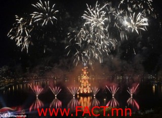 РИО-ДЕ-ЖАНЕЙРО. /Би-Би-Си/. Бразилын Рио де Жанейро хотын нууранд хөвж буй зул сарын аварга том модны гэрлэн чимэглэлийг асаах ёслолд 100 мянга орчим хүн оролцжээ.