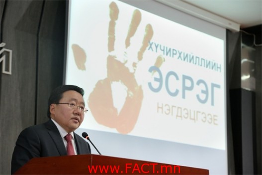 “Энд хүрэлцэн ирсэн эрхэм хүмүүсийн энэ өдрийн амгаланг айлтгая. Ярианы эхэнд би нэг зүйлийг хэлье. Ийнхүү уулзаж, төрийн зүгээс аливаа асуудалд анхаарлаа хандуулахад тодорхой үр дүнд хүрч болж байна. Өнгөрсөн 2012 оны гуравдугаар сарын 1-нд би энэ танхимд хар тамхитай холбоотой асуудлаар яриа өрнүүлж байсан. Хар тамхийг зөөвөрлөх, худалдах, хэрэглэхтэй холбоотой асуудалд Монгол Улс чухам ямар байр суурьтай байх юм бэ гэдгийг маш тодорхой ярьсан. Мөн иргэддээ “хар тамхи гэдэг зүйлийг хаяа хатавчиндаа хавьтуулж болохгүй. Сонор сэрэмжтэй байгаарай. Хэрэв хар тамхины асуудалд орооцолдсон тохиолдолд хатуу хандана” гэж сануулж байсан. Хар тамхины бодлогын хувьд Монгол Улс хатуу чанд бодлого баримтална гэж хэлж байсан.