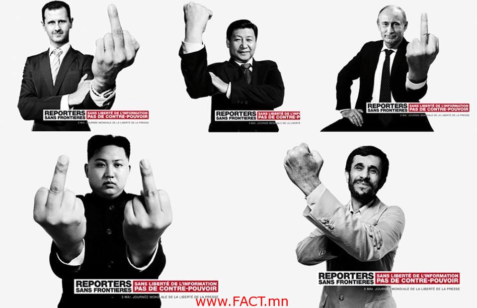 1528707_646593348741882_2057343778_nАНУ тэргүүтэй Барууны орнуудын түрэмгий бодлогын эсрэг тэд ийнхүү нэгджээ. Товчхондоо Ардчилал гэж “мөөрөх” дуртай тэдэнд F**K YOU, өөрсдийгөө л хичээ хэмээн сургав