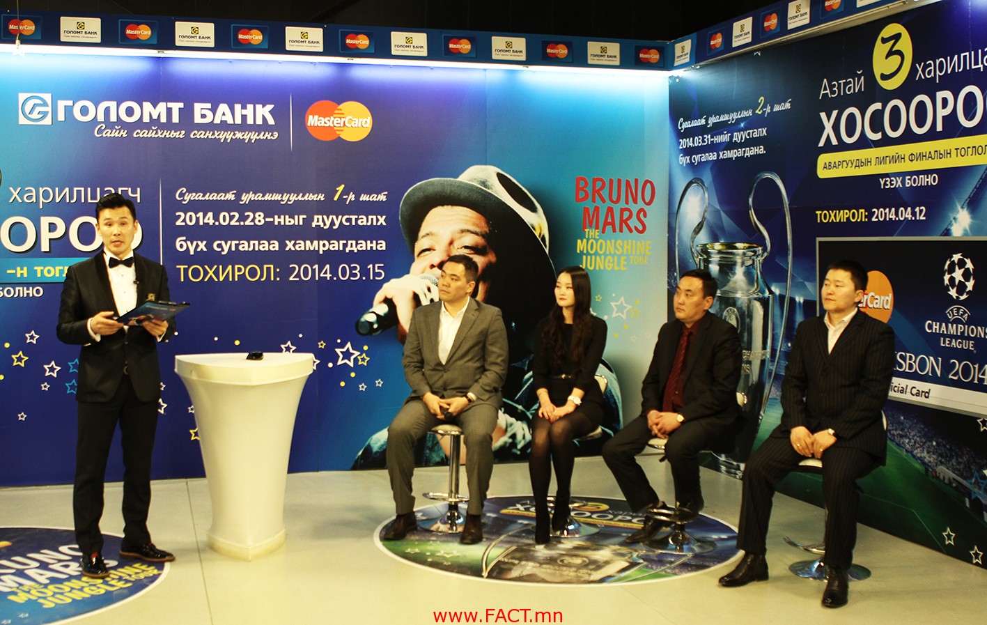 Өөрийн өвөрмөц, тансаг дуу хоолойгоороо шүтэн бишрэгчдээ байлдан дагуулсан дэлхийн супер од Бруно Марсын дэлхийг тойрох аялан тоглолт 4-р сарын 5-нд Бээжин хотод болох гэж байна. Түүний тоглолтыг үзнэ гэдэг олон мянган шүтэн бишрэгчдийнх нь хувьд мөрөөдөл юм. Харин Голомт банкны “ОЛОН УЛСЫН ТӨГРӨГИЙН МАСТЕРКАРТ” эзэмшигчдийн хувьд энэ бол хоосон мөрөөдөл биш харин түүний тоглолтыг хайртай дотны хүнтэйгээ дэргэдээс нь үзэж, насан туршдаа мартахгүй дурсамжийн эзэн болох юм. Энэхүү алтан боломжийг олгох эхний шатны сугалаат урамшуулал 2-р сарын 28-ныг дуустал үргэлжилсэн бөгөөд 3 сарын 15-нд азтанууд тодорлоо.