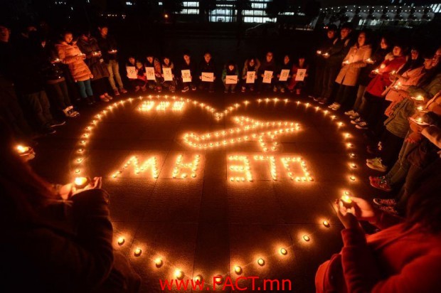 Тэгвэл Хятадын өмнөд хэсэгт орших Жиансу мужийн Янжоу их сургуулийн оюутнууд Боинг 777-200 онгоцны зорчигчдын араас зул өргөх арга хэмжээг зохион байгуулжээ. Тэрээр ор сураггүй алга болсон онгоцны хувь заяаг даатгаж, мөргөл үйлдэх арга хэмжээг Малайз, Хятадад зохион байгуулж байгаа юм байна.