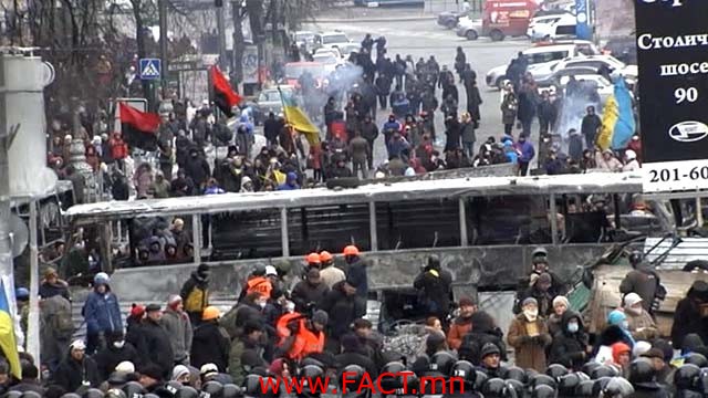 Мөн өдөр, ОХУ-ын Гадаад хэргийн сайд Лавров Украины Киев болон зүүн бүсэд болсон иргэдийн эсэргүүцлийн ажиллагаанд хоёр талт шалгуураар хандаж байна гэж барууны орнуудыг шүүмжлэв. 14-ний орой ОХУ-ын ерөнхийлөгч Путин, АНУ-ын ерөнхийлөгч Обаматай утсаар ярьж, Украины асуудлыг дипломат аргаар шийдвэрлэх тухай зөвшилцжээ.