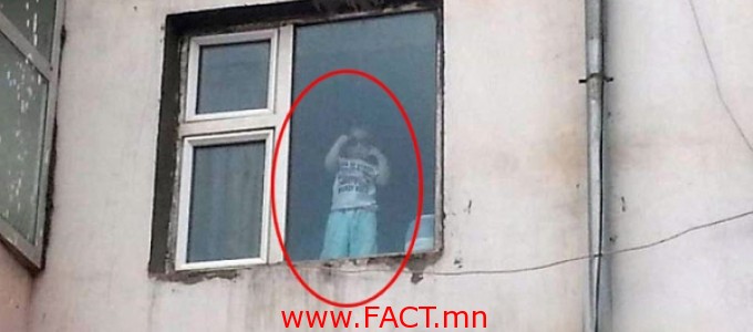 Тэр өдөр аав, ээж хоёр нь хүүгээ унтуулчихаад ажилдаа явсан байна. Гэтэл хүү нь сэрээд аав, ээжээ байхгүйг мэдээд сандал давхарлан тавьж байгаад ц0нхон дээрээ гарчээ. Харин цонхных нь дээд талын жижиг дөреөлжин онгорхой байсан тул хүүхэд тэр цонхоор толгойгоо гаргаж уйлжээ. Харин гадуур нь явж байсан хүмүүс харж хүүг “Цаашаа ор” хэмээн аргадаж, гуйж ядаад Онцгой байдлынхныг дуудсан байна. Ингээд ээж, аавтай нь холбогдох боломжгүй, утасных нь дугаарыг мэдэхгүй тул Онцгой байдлынхан болсон бүхнийг бичээд, хүүгээ орж аваарай гэх утгатай захиа гэрт нь үлдээн, хажуу айлд нь орхиод явжээ.
