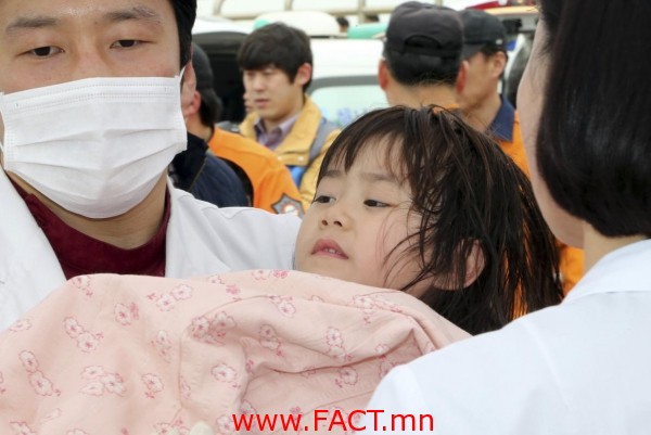 Өмнөд Солонгосын баруун өмнөд усан хилд живсэн зорчигчдын хөлөг онгоцны эрлийн ажиллагаа 7 дахь өдөртөө үргэлжилж байна. Сүүлийн үеийн бүртгэлээр, хөлөг онгоцны ослын улмаас 108 хүн эндэж, 194 хүн сураггүй алга болж, 174 хүн аврагдаад байна.