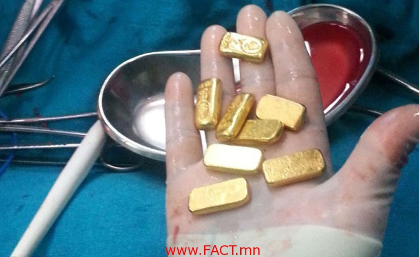 Рентген зургаар харахад гэдэсний түгжрэл үүссэн тодорхой болсон тул яаралтай хагалгаа хийжээ. Гэтэл гэдэснээс нь тус бүр 33 грамм жинтэй 12 ширхэг алтан гулдмай гарч ирсэн байна.