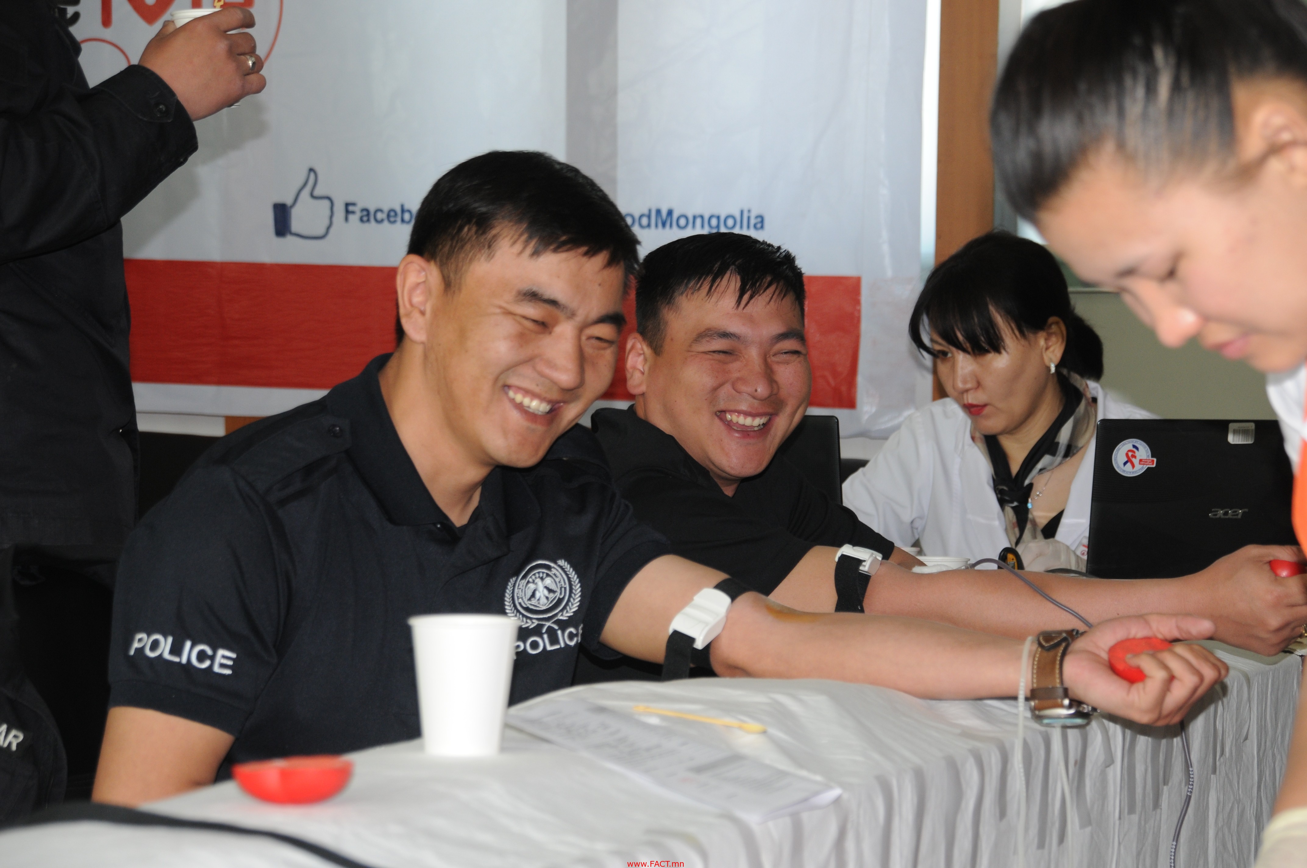 Дэлхийн цусны донорын өдрийг угтаж Нийслэлийн Замын цагдаагийн газраас энэ сайн дурын хүмүүнлэгийн ажилд 126 замын цагдаагийн ажилтнууд хамрагдаж цусаа хандивлаж, цусны донор болж, бусдад эрүүл амьдралыг бэлэглэж байна.