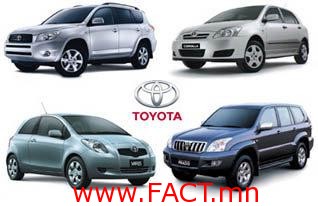 Эргүүлэн татах автомашинууд дотор “Corolla”, “Camry”, “Vios” зэрэг суудлын тэргүүд багтжээ.