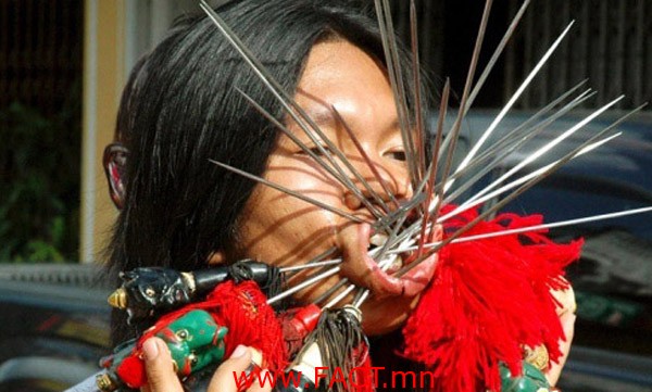 Хацараа цоолж уруул амаараа шовх үзүүртэй элдэв мэс гаргаж эд эрхтнээ зэрэмдэглэж байгаа эдгээр хүмүүсийн айдас жихүүдэс давхцуулсан энэ үзүүлбэрийг юу гэхээ хэлж мэдэхгүй нь. Ямартай ч туршихыг хатуу хориглож хүмүүсийг айдастай үзүүлбэрээрээ алмайруулж байгаа гаж залуусын үйлдлүүдийг сонирхуулав.