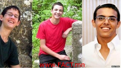 20140701035344Сураггүй болсон 16-19 насны хөвгүүдийн эрэлд Израилийн Засгийн газар Баруун эрэгт өргөн хүрээтэй ажиллагаа явуулж, Палестины удирдлагуудаас хүртэл тусламж хүсч байсан юм. Израилийн цэргийнхний эрлийн тусгай ажиллагааны үеэр Палестины таван иргэн амь үрэгдэж, 400 гаруй хүнийг баривчилсан аж.  Гэтэл сураггүй болсон гурван хүүгийн цогцос өчигдөр Баруун эргийн Хеброн хотын Халхулын ойролцоо ухсан нүхнээс олдсон байна. Баруун эргийг Йерусалим хоттой холбосон 60-р чиглэлийн зам Халхулыг дайран өнгөрдөг юм. Хөвгүүдийг сураггүй болсны дараа Израилийн цэргүүд уг замыг хамгийн түрүүнд хяналтандаа авч ажилласан аж. Энэ хэрэгт Израилийн Ерөнхий сайд Беньямин Нетьянху Палестины зэвсэгт “ХАМАС” бүлэглэлийг буруутгаж, “амь үрэгдсэн хөвгүүдийн өшөөг авна” гэж мэдэгджээ.