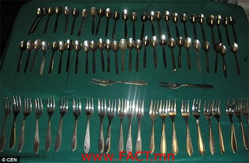 Голланд улсын иргэн 52 настай Маргарет хэвлийгээр нь өвдсөн зовиуртай эмнэлэгт хүргэгджээ. Рентген зургаас үзэхэд, түүний ходоодонд янз бүрийн гадны зүйл байгаа нь тодорхой болсон байна. Ингээд эмэгтэйд яаралтай хагалгаа хийж, хоолны халбага, сэрээ гаргаж ирсэн байна.