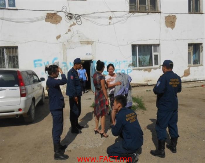 ХУД-ийн 10 дугаар хорооны нутаг дэвсгэрт байрлах 34, 35 дугаар байрны оршин суугчид барилгын хана нураад байна гэсэн дуудлагын дагуу дүүргийн онцгой байдлын хэлтсийн Гал түймрийн улсын хяналтын ахлах байцаагч, онцгой байдлын хошууч Ж.Ганхүү, ахлах ахлагч Б.Батбилэг нар газар дээр нь хүрэлцэн очиж байдалтай нь танилцсан байна.