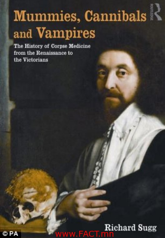 Хүн эмнэж домноход хүний мах эд эрхтнийг идэж хэрэглэж байсан – каннибализмын үзэл суртал: доктор Саггийн баталж байгаагаар 1698 онд Английн хатан хаан II Мэри мөн 1685 онд түүний авга ах II Чарльз хаан үхэхийнхээ өмнөхөн хоёулаа хүний тархи идэж байжээ.