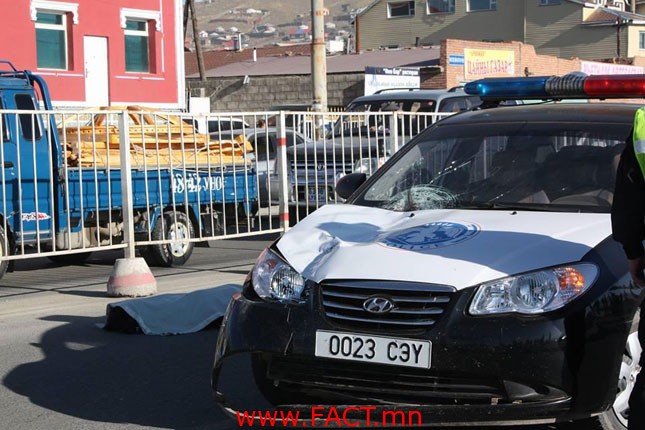 Өнөө өглөө Сэлэнгэ аймгийн дугаартай цагдаагийн машины жолооч ноцтой осол гаргаж 12 настай охины аминд хүрлээ. 7 буудлаас 17 дугаар сургууль руу явах замд энэ осол гарчээ. Гэрчүүдийн хэлж байгаагаар сурагч охин газар дээрээ амиа алдсан байна. Осол гаргасан машин нь Сэлэнгэ аймгийн СЭҮ 00-23 дугаартай байжээ. Яаралтай түргэн тусламжийн тэрэг цаг алдалгүй очсон ч охин амьсгал хураасан байсан гэнэ.