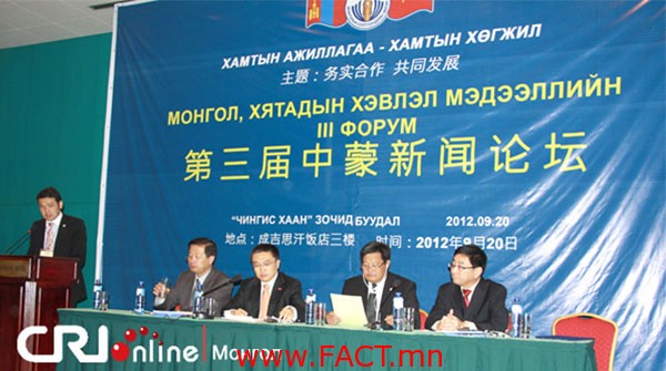 9-11-22hМонголын сэтгүүлчдийн эвлэл гадаад харилцаагаа хөгжүүлэх явцдаа ӨМӨЗО-ны Ардын засгийн газрын хэвлэл мэдээллийн албатай холбоо тогтоон хоёр орны хэвлэл мэдээллийн форумыг жил бүр хийдэг уламжлалтай болсон. Эхний хоёр удаагийн форум ӨМӨЗО-д болсон бол гуравдугаар форумыг 2012 онд  Улаанбаатар хотод зохион байгуулсан. Харин дөрөвдүгээр форум өнгөрсөн онд ӨМӨЗО-ны Бугат хотод цахим сэтгүүлзүйн хөгжлийн тухай сэдвийн дор болж өнгөрсөн. Тавдугаар форум маргааш  Эрдэнэт хотноо “Монгол, Хятадын хэвлэл мэдээллийн хамтын ажиллагааны өнөөгийн байдал, эрчимжүүлэх арга зам, боломж” сэдвийн дор болох юм. Форумд Хятадын төв, орон нутгийн хэвлэл мэдээллийн 25 төлөөлөгч, манай талаас 30 гаруй төлөөлөгч оролцож сурвалжилж байна.