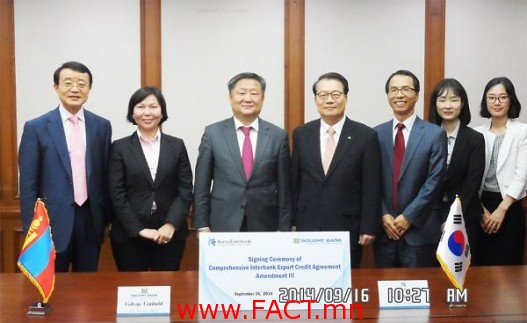 Тэгвэл 2014 оны 09-р сарын 15-ны өдөр энэхүү хамтын ажиллагааг шинэ шатанд гаргажГоломт банкны Гүйцэтгэх захирал ноён Г.Ганболд болон БНСУ-ын Экспорт Импорт банкны Дэд ерөнхийлөгч ноён Ки Саб Нам нар шинэчлэн найруулсан экспортын худалдааны санхүүжилтийн гэрээнд гарын үсэг зурлаа. Гэрээ ёсоор БНСУ-ын ААН-үүдтэй хамтран ажиллаж буй Голомт банкны харилцагчид болоод Монголд үйл ажиллагаа явуулдаг Солонгосын хөрөнгө оруулалттай ААН-үүд бага зардлаар, урт хугацаанд, таатай нөхцөлөөр зээл авах юм.