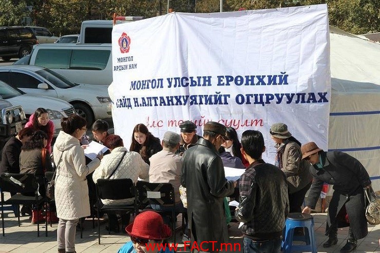 2013 оны наймдугаар сарын 30-ны өдөр Засгийн газар алдаатай бодлого, Чингис бондын буруу зарцуулалт, иргэдийн амьдрал дордсон шалтгаанаар “Ерөнхий сайд Н.Алтанхуягийг огцруулах 12 зүйл бүхий шаардлагыг” 14 хоногийн хугацаатай хүргүүлсэн.