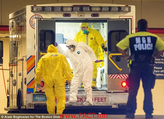 Бостон дахь эбола вирустэй тэмцэх албанаас “Дубайгаас ирсэн “Arab Emirates 237” онгоцонд 189 зорчигч болон багийн 15 гишүүн зорчиж явсан. Өндөр халуунтай байсан таван зорчигчоос шинжилгээ авсан. Эмч нарын таамаглаж буйгаар дээрх өвчтөнүүд эбола туссан байх магадлалтай байгаа. Одоогоор шинжилгээний хариу гараагүй байна. Харин үлдсэн зорчигчид болон багийн гишүүдээс авсан шинжилгээгээр тэд халдваргүй гэх хариу гарсан. Тэгэхдээ дахин шинжилгээнд хамруулах болно” гэж мэдээлсэн байна.