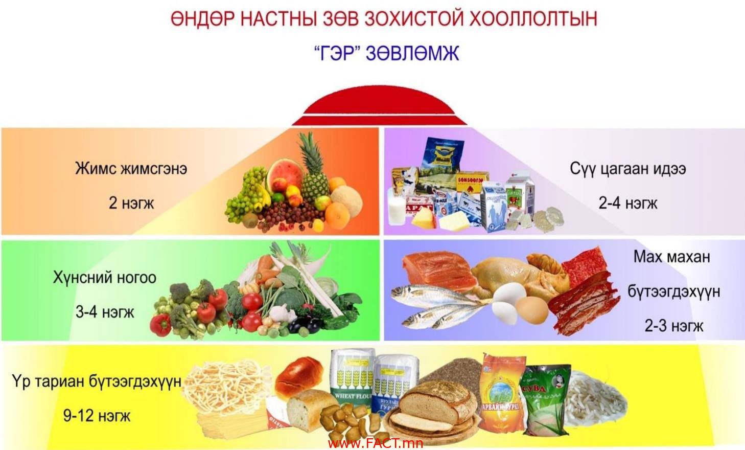 Өнөөдөр бол “Дэлхийн хүнсний өдөр”. Эл өдрийг тохиолдуулан “Нийгмийн эрүүл мэндийн үндэсний төв”-өөс Настны өдөр бүр тогтмол хэрэглэх хоол хүнс гэсэн “Гэр” зөвлөмжийг гаргажээ.