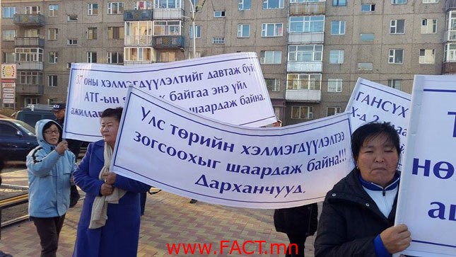 Ерөнхий сайдын зөвлөх Л.Гансүхийн үйл хэргийг дэмжиж, өлсгөлөн зарлахыг эсэргүүцэхээр Дархан-Уул аймгаас ирсэн 40 гаруй иргэн яг одоо Төв аймаг дахь цагдан хорих ангийн үүдэнд жагсаж байна. Иргэдийн төлөөллөөс зургаан хүнийг АТГ-аас Л.Гансүхтэй уулзуулахаар болжээ. Дэмжигчид Л.Гансүхэд сэтгэлийн дэм өгөхөөр ирсэн гэсэн бөгөөд “Мандаж явахад хамт байсан бид зовсон үед нүүр буруулж болохгүй. Энгийн ардын амьдралыг ойлгодог хүн хууль бус үйлдэл хийх ёсгүй” хэмээн мэдэгдэж байна. Тиймээс “Дарханчууд улс төрийн хэлмэгдүүлэлтээ зогсоохыг шаардаж байна”, “Төрийн өндөрлөгүүд журмын нөхрөө хэлмэгдүүлж, улс төрийн ашиг хонжоо харахаа зогсоо” зэрэг уриа лоозон барьж жагсчээ. Л.Гансүх уржигдар 14:00 цагаас хуурай өлсгөлөн зарлаж эхэлсэн юм.