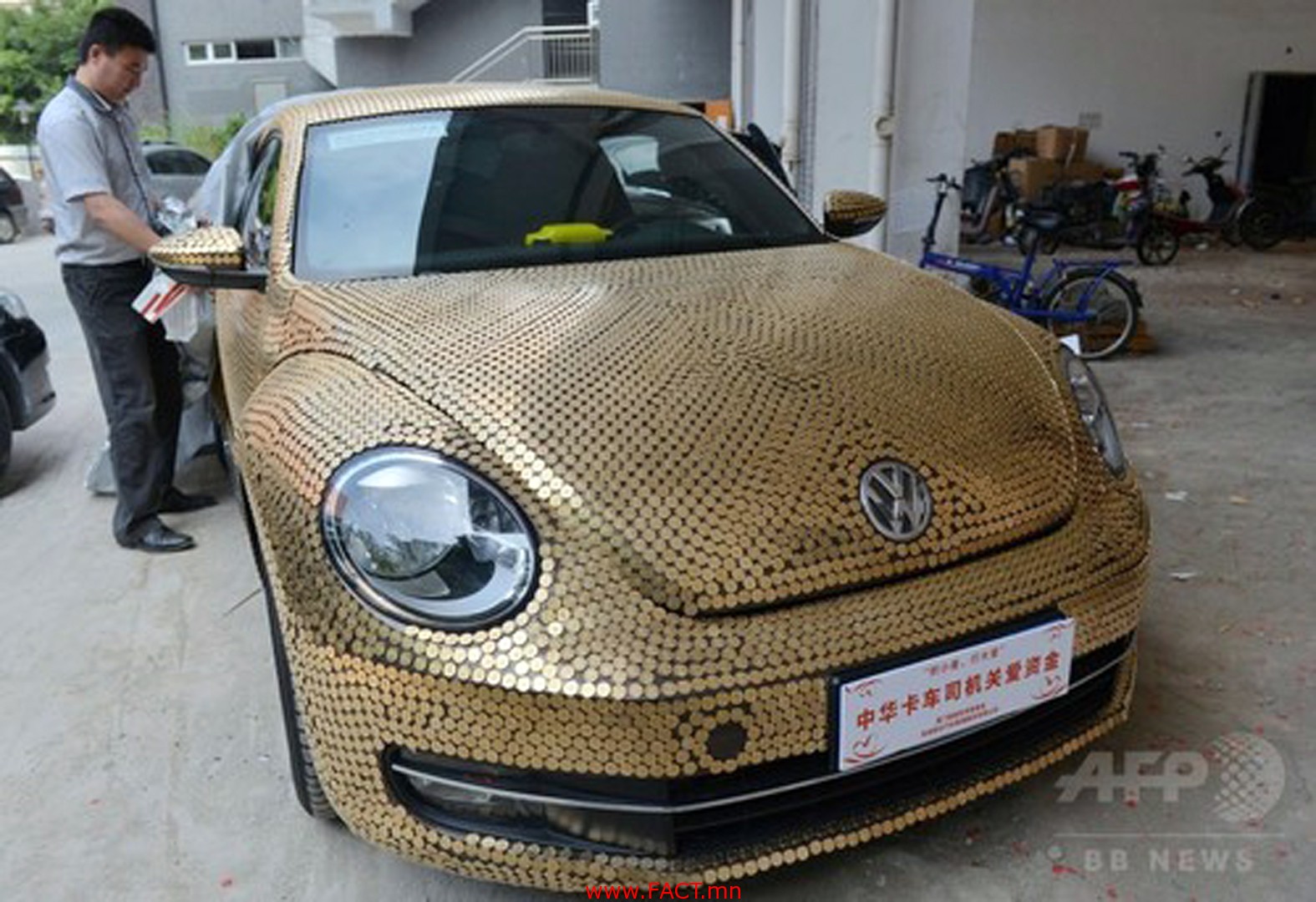 20 мянган орчим зоосоор бүрсэн машиныг БНХАУ-ын зүүн хэсгийн Фужянь мужийн Сямынь хотод олонд дэлгэн харуулжээ. Энэхүү машиныг 500 юанын зоосоор бүрсэн бөгөөд 30 гаруй хүн дөрвөн өдөр ажилласан байна. Машины их биеийг бүрэн бүрэхэд 19998 ширхэг зоос оржээ.
