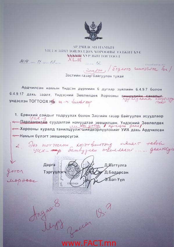 АН-ын албан бичгийн боловсрол нэг иймэрхүү. АН-ын ҮЗХ-ны хуралдааны тогтоолыг заслаа