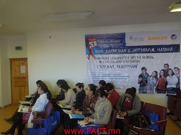 Мари Стопс Олон улсын байгууллага, ЭМЯ, ЭХЭМҮТ, Дорноговь аймгийн эрүүл мэндийн газартай хамтран ” Нөхөн үржихүйн эрүүл мэнд, Жирэмслэхээс хамгаалах арга хэрэгслүүд” сэдэвт сургалтыг Мари Стопс ОУБ-ын санхүүжилттэйгээр Сайншанд хот, Замын-Үүд суманд зохион байгууллаа.
