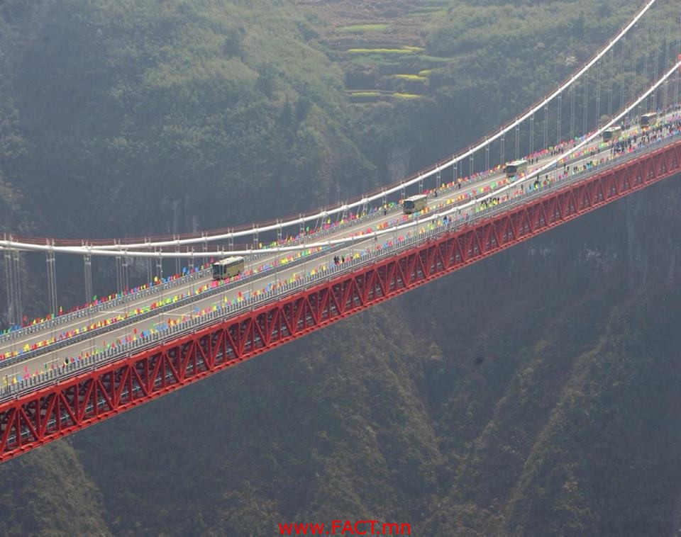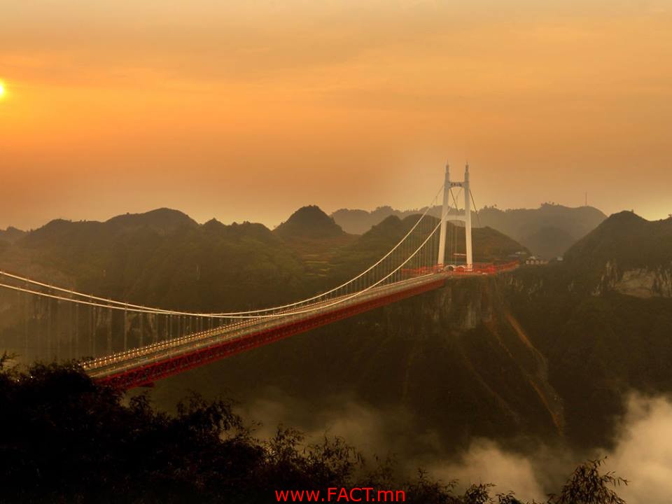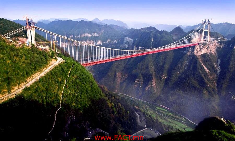 Хятадын Хунань мужийн гүүр дэлхийн хамгийн өндөр, хамгийн урт нь