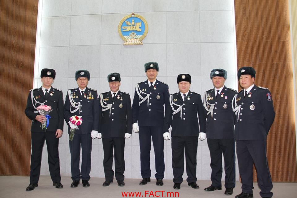Монгол Улсын Ерөнхийлөгчийн Зарлигаар Монгол Улс Үндэсний эрх чөлөө, тусгаар тогтнолоо сэргээн тогтоосны 103 жил, Нийслэл хотын 375 жил, Ардчилсан хөдөлгөөний 25 жилийн ойг тус тус тохиолдуулан төр захиргаа хууль эрх зүйн байгууллагад олон жил үр бүтээлтэй ажилласан алба хаагчид Монгол Улсын Төрийн дээд одон медалиар шагнагдлаа.