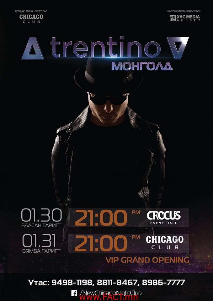 Дэлхийн хөгжимд дуртай залуусын дунд Trentino нэрээр танил болсон DJ Trenton Rosenbaum тун удахгүй Монголд ирэх гэж байна. Тэрбээр 2013 онд “Redbull”-ээс зохион байгуулдаг “Thre3style” нэртэй DJ нарын дэлхийн хэмжээний томоохон тэмцээнд оролцож түрүүлэхийн зэрэгцээ 2013 оны Дэлхийн аврага цолыг хүртсэн.