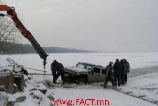 Туул голын мөсөнд цөмөрсөн машиныг татаж гаргав