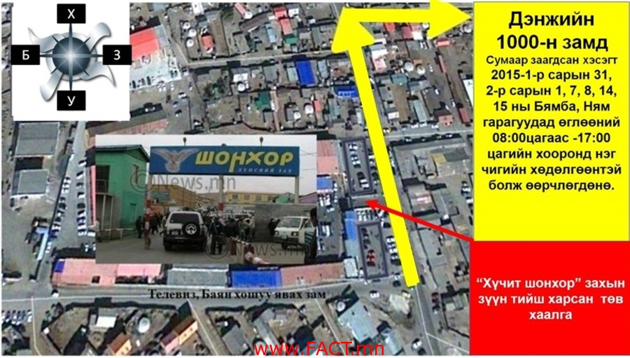 Нийслэлийн Засаг даргын “Сар шинийн баярыг угтсан зарим арга хэмжээний тухай” А/78 дугаар захирамжийн дагуу авто замын ачааллыг бууруулах зорилгоор нэгдсэн зохицуулалтын арга хэмжээ авч байна. Тухайлбал, Чингэлтэй дүүргийн нутаг дэвсгэрт 2015 оны 01 дүгээр сарын 31, 02 дугаар сарын 07, 14-ний бямба гараг, 02 дугаар сарын 01, 08, 15-ны ням гарагуудад “Дэнжийн мянга”-ын авто замын хөдөлгөөнийг “Хүчит шонхор” худалдааны төвийн зүүн урд уулзвараас хойш үерийн далангийн уулзвар хүртэл урдаас хойш чиглэлд, далангаас зүүн тийш Судалт төвийн /хуучнаар/ уулзвар хүртэлх авто замын хөдөлгөөнийг баруунаас зүүн чиглэлд 08:00-17:00 цагийн хооронд нэг чигийн хөдөлгөөнд оруулж зохицуулалтын арга хэмжээ авч, хөдөлгөөний аюулгүй байдлыг хангаж ажиллана. Энэ хугацаанд “Нийтийн Үйлчилгээний Улаанбаатар Нэгтгэл” Орон нутгийн өмчит аж ахуйн тооцоот үйлдвэрийн газар шаардлагатай тэмдэг, хаалт байрлуулна гэж Нийслэлийн ЗДТГ-ын Хэвлэл мэдээлэл, олон нийттэй харилцах хэлтсээс мэдээллээ.