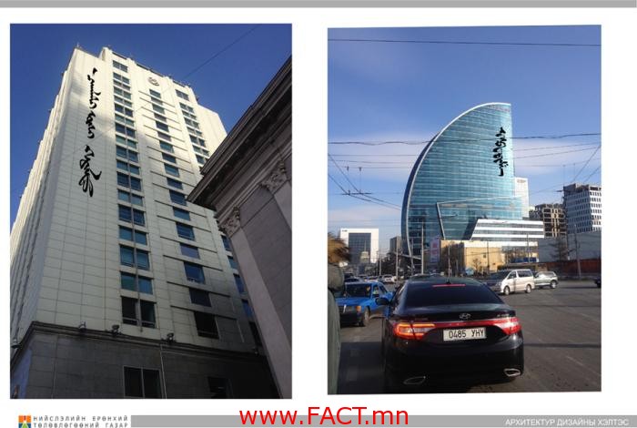 Нийслэлийн Ерөнхий төлөвлөгөөний газраас Монгол Улсын Засгийн газрын 2013.02.02-ны өдрийн “Монгол хэл, бичгийн боловсролыг сайжруулах арга хэмжээний тухай” 37 дугаар тогтоол, Нийслэлийн Засаг даргын 2014 оны “Ухаалаг Улаанбаатар хөтөлбөрийг хэрэгжүүлэх тухай” А/428 дугаар Захирамжийн дагуу байгууллага, аж ахуйн нэгжүүдийн гадна хаяг, зар сурталчилгааг Монгол бичгээр бичих төслийг санаачлан хэрэгжүүлж эхэллээ. Засгийн газрын дээрх тогтоолын 5 дугаар зүйлд “хот, суурин газар төрийн болон хувийн хэвшлийн бүх байгууллагын хаяг, зар сурталчилгааг Монгол, Кирил бичгээр бичиж байхыг бүх шатны засаг дарга нарт үүрэг болгосон байна.