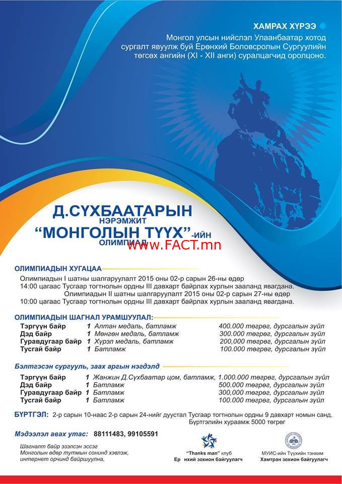 Олимпиадын I шатны шалгаруулалт 2015 оны 02-р сарын 26-ны өдөр