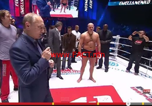 2012 оны 11 сарын 20-нд ОХУ-ын Москва хотын Олимп спорт цогцолборт дүрэмгүй тулааны дэлхийн хүнд жингийн М-1 төрлийн тулаан болж, үүнд ОХУ-ын тамирчин Федор Емельяненко, АНУ-ын тамирчин Жефф Монсон нар халз тулалджээ. 5 минутаар 3 үе тулалдсан тус тулаанд Федор Емельяненко өрсөлдөгчөө бараг л “цэвэр” ялжээ. Тус тоглолтыг ОХУ-ын Ерөнхийлөгч В.Путин сонирхон үзсэн төдийгүй Федор Емельяненкод баяр хүргэн рингинд гарч иржээ. Тэрээр хэлсэн үгэндээ: “Дүрэмгүй тулаан сонирхогчдын хувьд том үйл явдал боллоо, 6 орноос ирсэн эрэлхэг, зоригтой, хүч чадалтай эрчүүдийн тулаан гайхамшигтай байлаа” гээд, ялагч болсон нутгийнхаа тамирчин Федор Емельяненкод хандан: “Федорт баяр хүргэе, чи биеийн хувьд хүчирхэг байсан төдийгүй зан чанарын хувьд жинхэнэ орос баатар байж чадлаа” гэж хэлсэн байна.