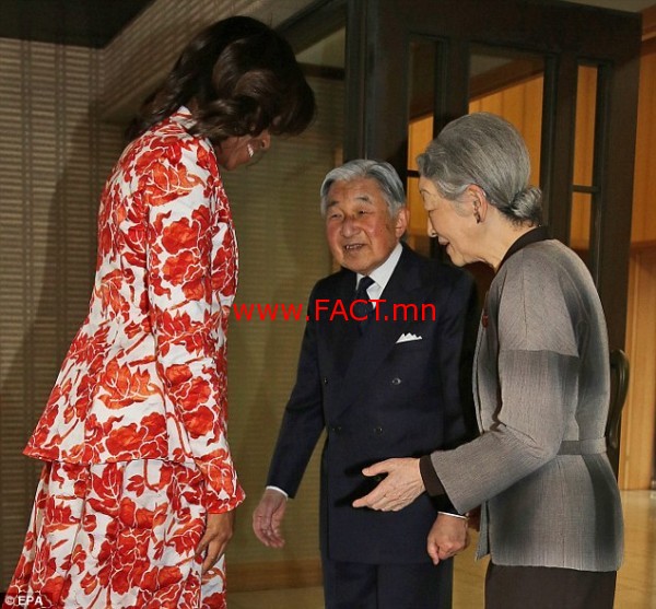 АНУ-ын тэргүүн хатагтай Мишель Обама Ази дахь айлчлалаа Японоор эхлүүлсэн тухай “www.dailymail.co.uk” мэдээллээ. Тэрбээр өчигдөр албаны хүмүүсийн хамтаар Токио хотноо ирж, тус улсын эзэн хаан Акихито болон хатан Мичикод бараалхсан байна. Хатагтай Обамагийн айлчлал гурван өдөр үргэлжих бөгөөд энэ хугацаанд тэрбээр Японы Ерөнхий сайд Шинзо Абе, Боловсролын сайд Кихара нартай уулзаж, дэлхийн боловсролын асуудлаар байр сууриа солилцох юм.