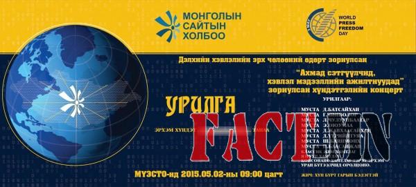Тавдугаар сарын 2-ны өдрийн 10:00 цагаас  Сэтгүүл зүйн салбарт ажиллаж байсан үе үеийн ахмад сэтгүүлчдэд зориулан баярын концертийг зохион байгуулж  ахмадуудаа үнэ төлбөргүйгээр үзүүлж, гарын бэлэг гардуулах болсон. Хэрвээ та сэтгүүл зүйн салбарт ажиллаж байсан, ажиллаж байгаа бол  энэхүү тоглолтын урилгыг МОСАХ-ны  315090 тоот утсаар холбогдон авч болох ажээ. Ахмадууддаа өгөхөөр  МОСАХ-оос  бяцхан гарын бэлэг бэлтгэсэн  гэнэ.