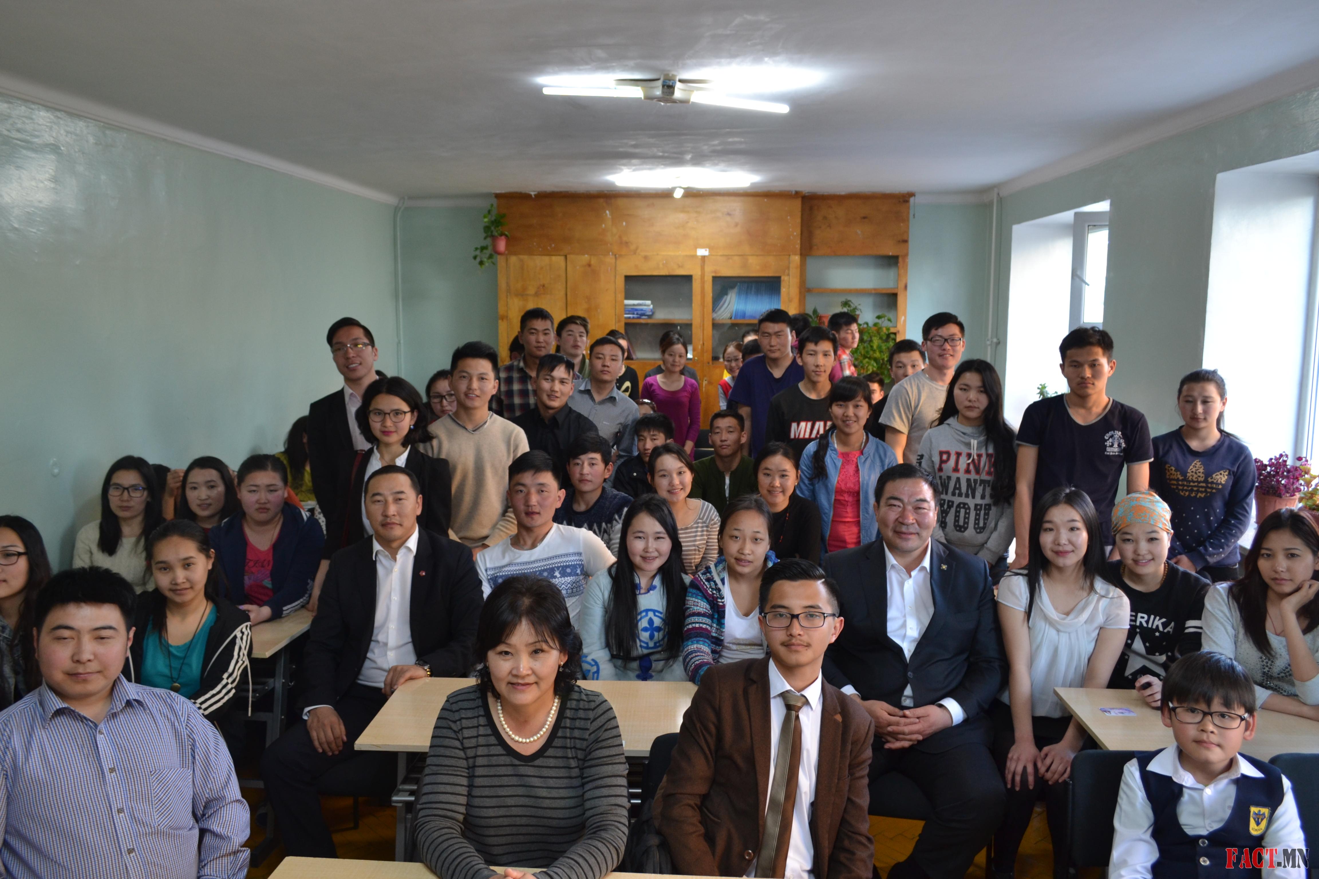 УИХ-ын гишүүн Б.Бат-Эрдэнэ, Ерөнхий нарийн бичгийн дарга Ж.Мөнхбат нарын уулзалтад залуус өргөнөөр оролцлоо. УИХ-ын гишүүн Б.Бат-Эрдэнэ “ Улс орны хөгжил хүний хөгжил, боловсролоос эхтэй. Монгол хүний чадвар уул уурхайн баялагаас үнэтэй. Тиймээс ч оюутнуудаа гадаадад сургаж, дэлхийн төвшний мэдлэг эзэмшүүлэх талд анхаарч байна. Өмнө нь оюутнуудтай уулзахад дотуур байрны асуудал хүндрэлтэй байгааг хэлж байсан. Үүнийг шийдвэрлэхээр 1000 оюутны “Оюутны өргөө” –г барих ажлыг хийсэн” гэлээ.