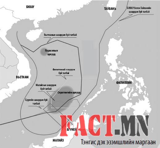 Өмнөд Хятадын тэнгист Спратли ба Параселийн гэсэн хоёр бүлэг арал бий.
