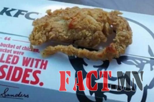 ВАШИНГТОН. /BGRNews/. Өнгөрсөн долоо хоногт гэрийнхээ ойролцоох “KFC”-гээр үйлчлүүлсэн Калифорни муж улсын оршин суугч нэгэн залуугийн хоолонд шарсан харх шиг зүйл гарч ирсэн дүрс бичлэг интернэтээр тархаж, шуугиан дэгдээсэн билээ. Гэсэн хэдий ч “KFC” уг шарсан хулгана шиг зүйлд ДНК-гийн шинжилгээ хийж, хулгана шиг хэлбэртэй тахиа болохыг тогтоосон байна.Хэрэглэгчийн өмгөөлөгч тухайн бүтээгдэхүүнийг лабораторид шинжлүүлэхээр илгээсэн бөгөөд эрэгтэйн хэлсэн шиг харх биш, харин тахиа болохыг тогтоосон албан ёсны дүнг бид хүлээн авсан гэж “KFC” компани “АВС” мэдээллийн агентлагт өнгөрсөн долоо хоногт мэдээлжээ.