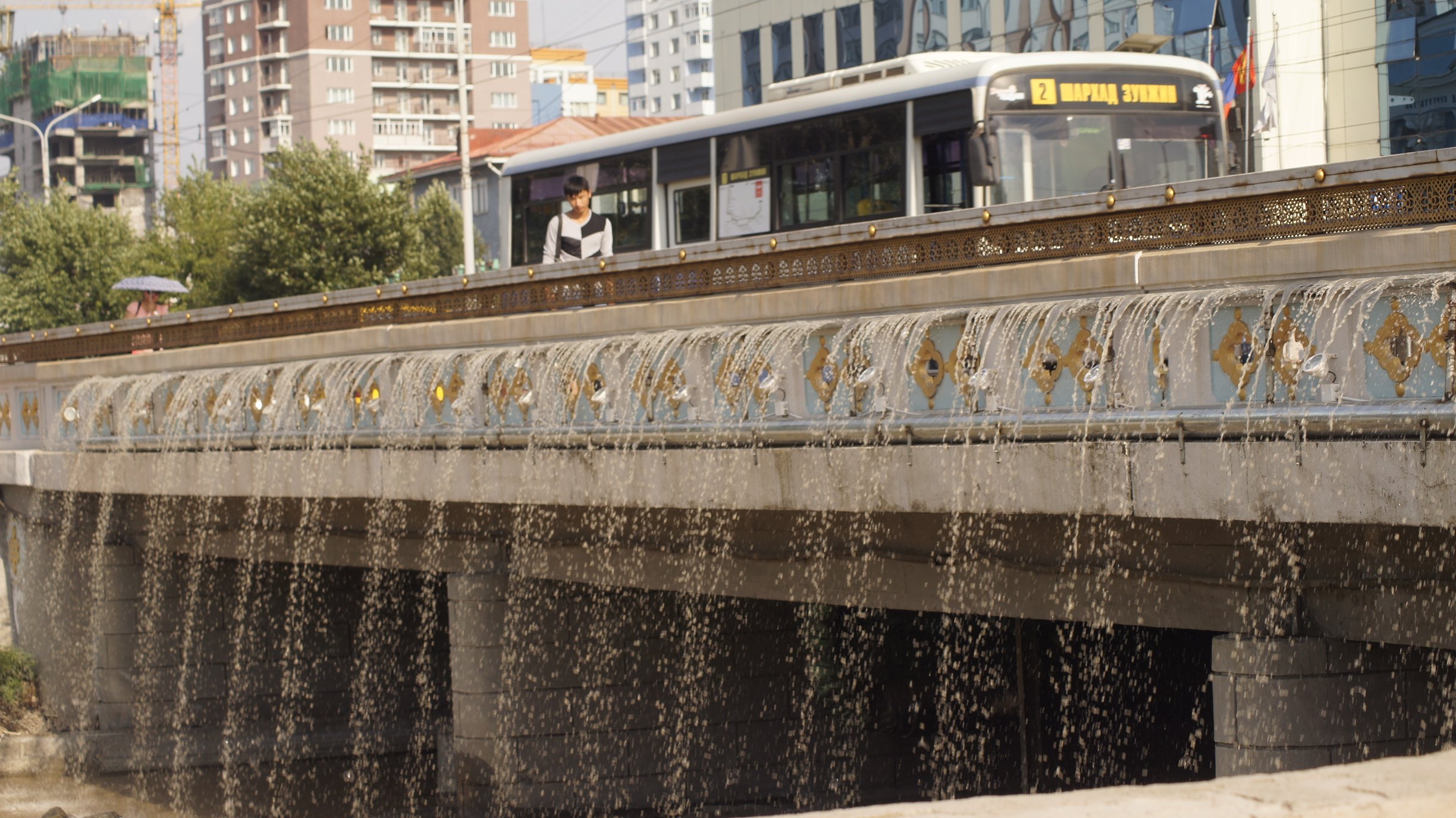 Өчигдөрхөн л хотын төв Арслантай гүүрэн дээр усан хөшиг байгууллаа хэмээн сүр дуулиантай нээлтээ хийлээ. Уг усан хөшигний давуу тал нь ойр орчмынхоо тоосжилтыг багасгах, хотын өнгө үзэмж сайжруулна гээд л хотын түшээд ам уралдан хийсэн бүтээсэн зүйлээ магтаж харагдсан.