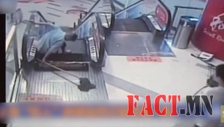 Гэтэл Шанхай хотын нэгэн худалдааны төвийн үйлчлэгч залуу урсдаг шатанд хөлөө гэмтээн, тайруулахаас өөр аргагүйд хүрчээ.