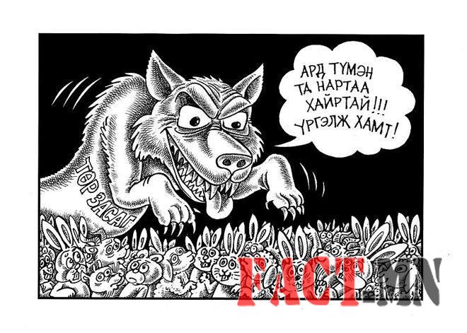 Нэгэн замын цагдаа “Ланд круйзер-200” маркийн автомашин зогсоогоод “Та аль намын гишүүн бэ” гэж асуутал машины эзэн “МАН-ынх” гэжээ. Тэгсэн замын цагдаа “Аан, ашгүй… Торгож болох юм байна. АН-ынхныг торгочихвол хэл ам хийгээд, намайг ажилгүй болгож мэднэ” гэсэн онигоо ч гэмээр яриа сошиалаар яваад байгаа нь үнэний ортой. Тэд ийм л дүр төрхийг дөрвөн жилийн хугацаанд нийгэмд бүтээсэн. АН-ын гишүүний өмнө хууль бөхөлзөж ард түмний өмнө хууль данхалзаж байдаг ийм л нийгэм. Товчхондоо ардчилалгүй ардчилагчдын тарьсан балгийг ард түмэн нуруун дээрээ дааж ядан үүрч явна. Бүр сүүлдээ төрийн мөнгөнөөс хумсалчихаад түүнийгээ нуун дарагдуулах санаатай өөрсдөдөө зориулж хууль баталж байдаг. Ард түмнийг арай л дэндүү доромжилж байгаа юм биш үү, АН-ынхан. Бөгс бөөрөө нийлүүлээд наалдчихсан “Шударга ёс” эвслийнхэн чинь хүртэл нүүрээ хийх газаргүй болж, наад хуулийг чинь дэмжихгүй гээд байхад “ширэн нүүр” гаргасаар байгаад дэмжээд явуулчихсан. Одоо Хууль зүйн байнгын хороо эцсийн хэлэлцүүлгээ хийнэ. Ингээд л АН-ынхан ямар ч идэж уусан, улсаас хумсалсан хөрөнгөгүй, өөрийн тархи толгой, бие сэтгэлийг чилээн байж олж авсан хөрөнгөтэй хүмүүс болж хувирна. Арчилагчдаа гэж… Мөн ч том толгойтой идэж ууж ханадаггүй, ёсроолгүй сав шиг нөхдүүд байх юм даа.