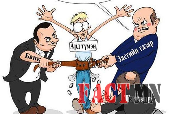 Улс орны хямралд ард түмэн л буруутай. Ард түмэн нь ядуу байгаа учраас улс орон ч ядуу байх нь ойлгомжтой. Тиймээс ард түмнээ баян болгохын тулд эхлээд улс орноо хөрөнгөжүүлэх арга замыг манай дээдчүүд олсон бололтой юм. Ямар арга зам вэ гэдгийг нуршиж, тайлбарлалтгүйгээр ойлгочихсон байх.