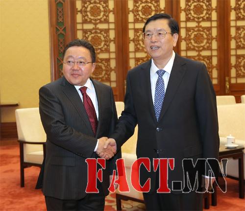 Монгол Улсын Ерөнхийлөгч Цахиагийн Элбэгдорж Бүх Хятадын Ардын Төлөөлөгчдийн Их Хурлын Байнгын хорооны дарга Жан Дөзянтай уулзав.