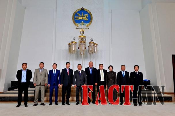УИХ-ын ээлжит бус чуулганы хуралдаанаар томилогдсон Монгол Улсын Засгийн газрын гишүүн-Монгол Улсын Шадар сайд Цэрэндашийн Оюунбаатар, Монгол Улсын Засгийн газрын гишүүн-Сангийн сайд Баярбаатарын Болор, Монгол Улсын Засгийн газрын гишүүн-Байгаль орчин, ногоон хөгжил, аялал жуулчлалын сайд Намдагийн Батцэрэг, Монгол Улсын Засгийн газрын гишүүн-Барилга, хот байгуулалтын сайд Зангадын Баянсэлэнгэ, Монгол Улсын Засгийн газрын гишүүн-Зам тээврийн сайд Мөнхчулууны Зоригт, Монгол Улсын Засгийн газрын гишүүн-Хөдөлмөрийн сайд Гарьдхүүгийн Баярсайхан нарт Монгол Улсын Гадаад хэргийн сайд Л.Пүрэвсүрэн, Аж үйлдвэрийн сайд Д.Эрдэнэбат, Уул уурхайн сайд Р.Жигжид, Хүн амын хөгжил, нийгмийн хамгааллын сайд С.Эрдэнэ, ЗГХЭГ-ын Тэргүүн дэд дарга Ш.Солонго, ЗГХЭГ-ын дэд дарга Г.Ганболд нар тамгыг нь гардуулан өгч, ажлын амжилт хүслээ.